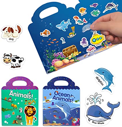 Another great toy for little fidgeters. You can get some great inexpensive sticker books. We love stickers that peel off very easily without leaving that paper residue. Our son loves decorating his tray table, and it all just peels right off. I also found these handy reusable sticker books which are fantastic for using over and over.